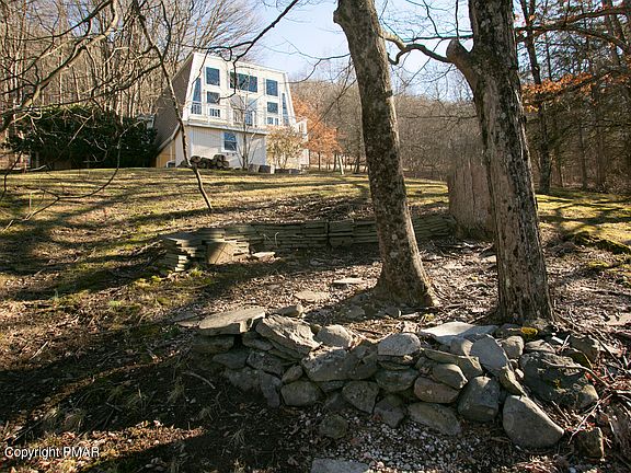 Three Bedroom, Two full bath, Contemporary with mountain view close to Shawnee Mountain Ski area and the Delaware Water Gap National Recreation Area. Well cared for and clean. Includes a spacious living room with a beautiful wood burning fireplace with a blue stone hearth. Primary Bedroom includes full bath. A balcony off the living room to enjoy the cool breeze and views and a 21 by 12 deck for a picnic table and chairs. Lots of light to brighten your days. New carpet just installed. Close to shopping, recreation, entertainment and medical.