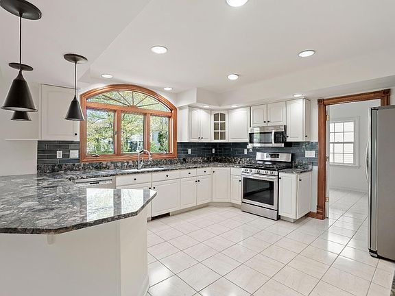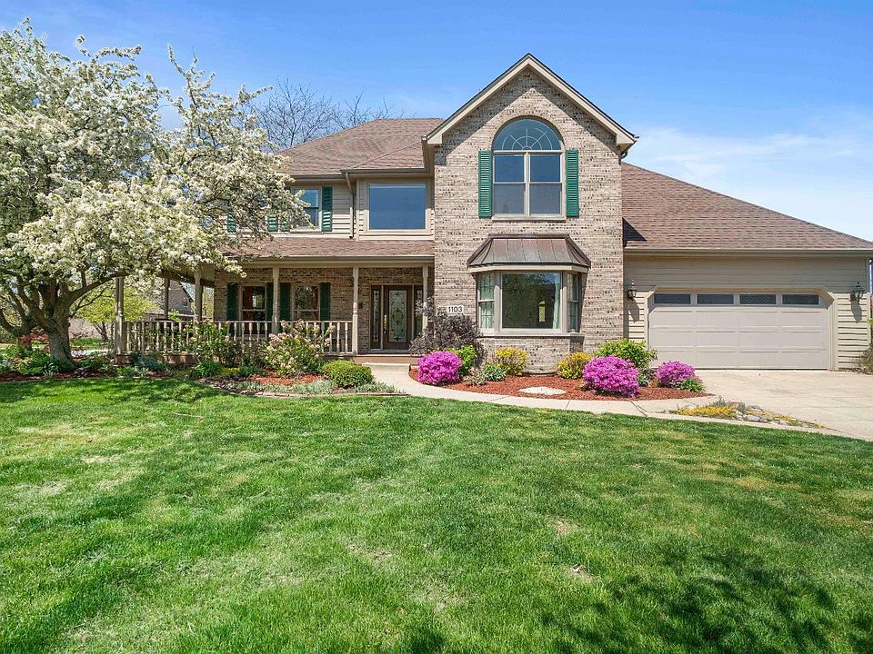Imagine enjoying the sunset from your wrap-around porch of this updated 2-story in Munster's highly desirable Cobblestones subdivision. Step into your foyer featuring board & batten design and double height ceilings. Flanked by a formal dining room and office with custom built-in shelving, continue into your sun-drenched kitchen-living room combo that exhibits the corner lot exposure. Seamlessly entertain guests from your open-concept chef's kitchen crowned by stainless steel appliances. Step onto your deck from your sliding glass door for grilling, cocktails, or to enjoy the generous backyard. Upstairs, find a large main bedroom suite with walk-in spa bath, a cathedral height 2nd bedroom with vaulted ceiling, plus two additional bedrooms of gracious size. Finished basement offers bath, gym, dry bar/kitchenette, and recreation room complete this well-loved and updated home.
