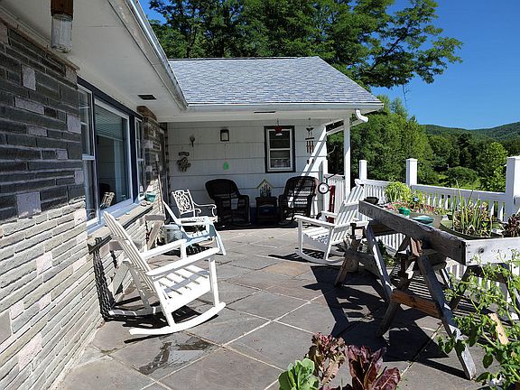 A perfect country getaway in NE Wayne County! Gorgeous stonework sets off this 4 BR/1.5 bath ranch on 153+ acres, just a minute from the Delaware River at Kellams Bridge. The nearly 2500 sq ft house has many updates: quartz counters & SS appliances in kitchen. Tile & wood floors. Roomy 567 sq ft Great Room features cathedral ceiling and skylights. MBR w/half-bath. Stackable W/D; on-demand HW heater. A/C units. Never worry about power outages; whole house generator & LP gas tanks owned. Spacious 12x38' bluestone patio. Barn & land across River Rd. 2-car garage under; summer kitchen in basement. Lush flat lawn w/incredible stone touches. Garden to your heart's content. Start a farm! Bonus: home comes furnished so you can move right in! 30 min to Honesdale, PA; 10 min to Callicoon, NY.