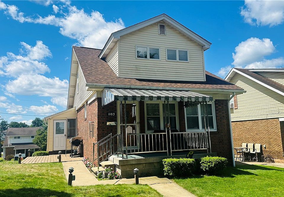 This spacious, 2 sty, 3 bedroom home features a classic blend of brick and vinyl on the exterior, giving it a timeless yet updated appearance and has fantastic curb appeal!!! The front of the house showcases a welcoming porch has stainless steel railings, perfect for sitting out and enjoying the neighborhood. Upon entering, you'll find yourself in a spacious living room, ideal for relaxing with family or entertaining. The formal dining room is large enough to accommodate a full dining set, with plenty of natural light streaming through the windows, making it the perfect spot for family meals or special occasions. HARDWOOD floors under carpet. Upstairs you'll find 3 well-sized bedrooms with ample closet space and windows that shine in plenty of daylight. The full bathroom on this level is modern, with updated fixtures and a clean, fresh design. The basement is practical and functional, with all newer mechanics ensuring the home runs smoothly and efficiently. FREEZER in basement stays