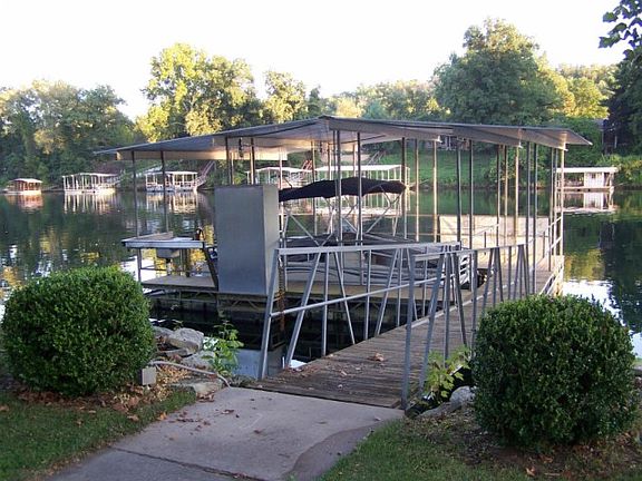This beautiful Lake Taneycomo lakefront home sits on a large corner lot with water on two sides. Located in an ideal, in town, location within walking distance to Historic Downtown Branson and the Branson Landing. Enjoy the spacious rooms, tasteful features, and private boat dock with 10 x 24 boat slip, fishing deck and cleaning station. Additional features include vaulted ceilings, open living area, large master suite, custom fireplace, and large windows framing ''front seat'' views of the lake! 1700 sq ft of garage space provides plenty of storage, and all appliances are included! Check out the custom cabinetry and energy efficient construction this home has to offer. Lakefront beauty, in town convenience, and custom features makes this home a must see! Contact official listing agent The Robertson Team 417-294-2662.