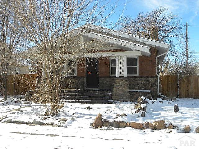 Cute & Cozy 2 Bedroom 1 Bath brick and stone home with a partial storage basement. Home includes a wood burning fireplace with built in cabinets around the fireplace in the living room, high efficiency furnace, nice tiled bathroom, open dining room, good size low maintenance back yard with mature trees in front and rear. Excellent curb appeal with the attractive brick/stone vintage look and covered front porch. The 2 car detached brick garage compliments the home. With loving care this will be a great home. Priced to sell!