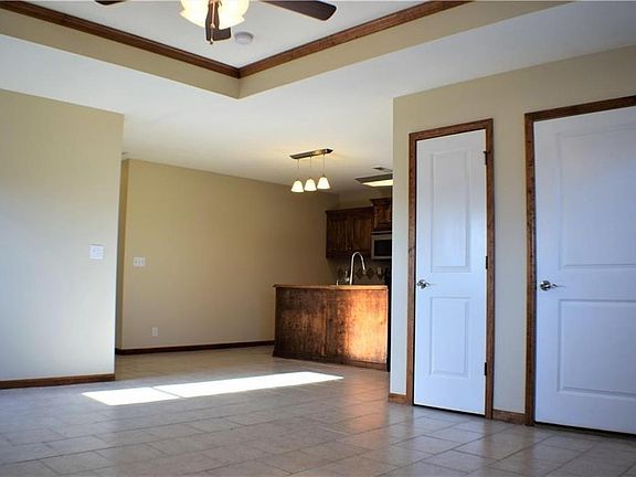 Newer duplex for rent in Warrensburg Mo now ready for showing Strategically located just minutes from downtown Warrensburg and 12.5 miles (19 minutes) drive from Whiteman Airforce Base. Nearly 1200 square feet, 3 bedrooms and 2 full baths with a nice sized living/kitchen/dining area with all appliances included. Newly carpeted in bedrooms. All on one level with extra wide doors so would be good for elderly couple or someone needing wheelchair access. It has a one car garage with electric door opener and remote control. $1200 per month. Deposit Required. No smoking. You are responsible for utilities. Trash and mowing paid by landlord. Landlord pays HOA fees which covers mowing and trash service. Renter responsible for all other utilities.