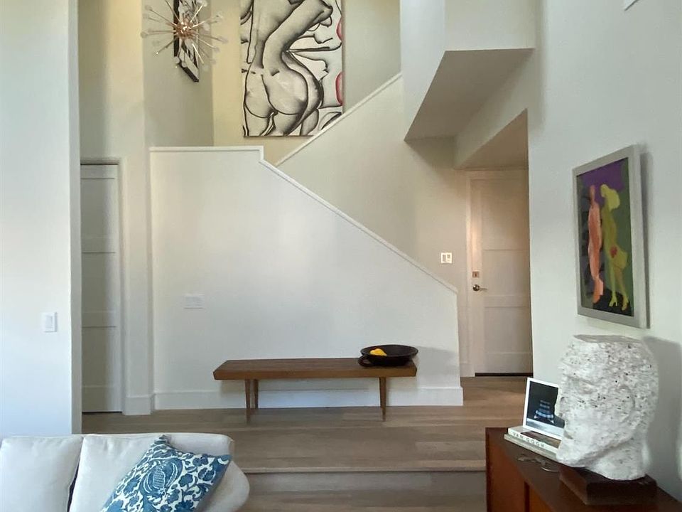 Welcome to your newly renovated dream home in Creekside Village! This sun-filled unit boasts two-story dramatic vaulted ceilings and two large, custom patios - perfect for entertaining guests or simply relaxing in the sunshine. With all new engineered hardwood floors, recessed LED lighting in every room, and custom window treatments throughout, you'll feel right at home in no time. The main floor features a brand new full bath and updated kitchen with appliances, including a convenient washer/dryer. Upstairs, you'll find a cozy loft that can be used as a den, office or extra sleeping area. Enjoy the community amenities, including a pool and spa, perfect for those warm summer days. Plus, extras like a gas line for grilling, water filter, and brand new storage cabinets in the garage make this the perfect place to call home. Move right in and start enjoying your new home and the wonderful Creekside Village community today!