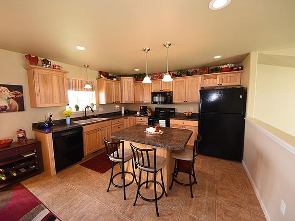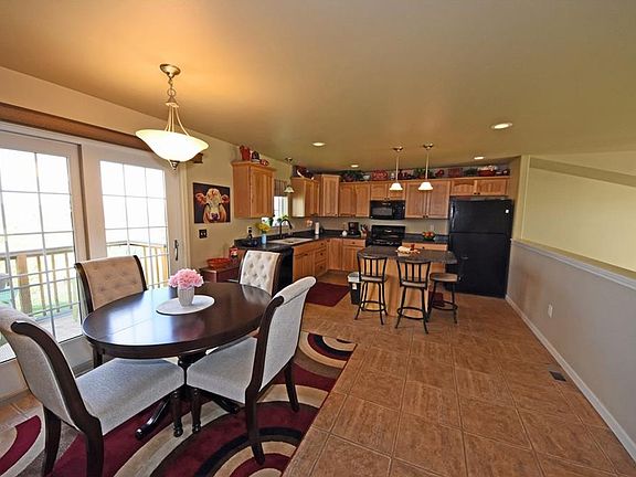 Meticulously kept home with many extras. Ample entry area with closet and garage access. Bright and sunny living room, hickory kitchen with island and pantry, adjacent dining area has patio door to sitting deck with steps to garden level patio, master suite with private bath and vaulted ceiling, lower family room w/ patio door to garden level, basement room has egress window and is unfinished, all situated on a landscaped fenced lot with private country backdrop overlooking big ditch.
