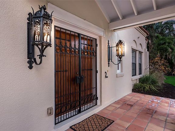 If Walls Could Talk...Rich in history this magnificent Spanish-Mediterranean residence was built in 1924 as Palma Sola Park's first clubhouse. Situated on 3/4 acre of winding garden paths, lush landscape and mature trees, the home offers over 3,000 sq ft of living space with an expansive great room, family room, gourmet kitchen, 4 bedrooms, 3 bathrooms, office, guest quarters and more. Warm wood beams, hand selected Mexican tiles, 3 gas fireplaces and a romantic wrought iron staircase leading to a reading nook are just a few of the homes architectural touches. The master bedroom offers his/her walk-in closets, gas fireplace and double french doors that open to a private courtyard with a walled garden and Spanish fountain that is truly magical. Chicago brick leads to the 2 car garage with an upstairs carriage house offering 1 bedroom, 1 bathroom and a quaint living area with a kitchenette that is perfect for friends and family. Fabulous screened lanai with wonderful lighting opens to the expansive pool area-The Place for summer entertaining!