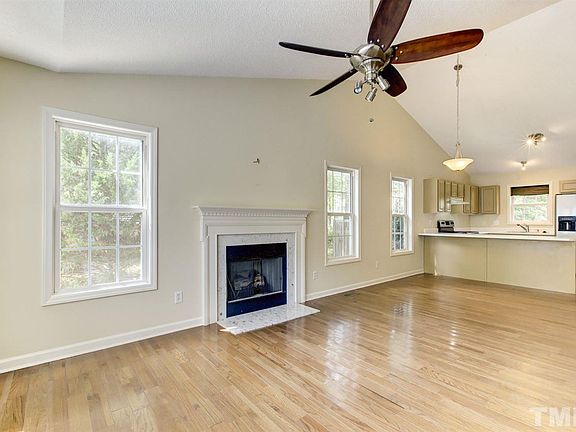 CUTE RANCH STYLE HOME WITH VAULTED CEILING IN FAMILY ROOM. HOME WITH AN OPEN CONCEPT FLOOR PLAN. FENCED BACKYARD AND HOME FACES WOODS OFFERING A NICE PRIVATE FEELING. CLOSE TO 540 AND EASY ACCESS TO RALEIGH. SUPER CLOSE TO HODGE ROAD ELEMENTRY SCHOOL. MOVE IN READY SEPTEMBER 1! Security deposit and first month rent due at lease signing.