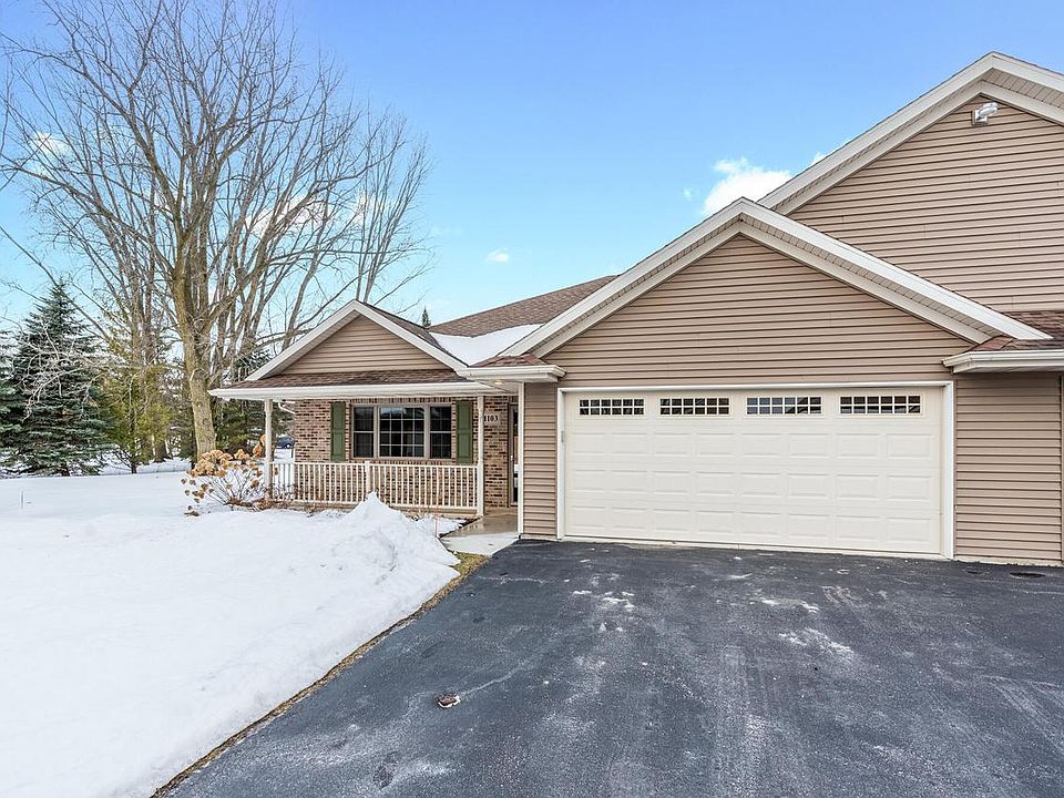 Popular Duke Estates Condominium Development in Kiel! Welcome to this charming, easy living 2 bedroom, 2 bathroom condo. It has all amenities conveniently located on 1 level (no basement) and offers a grand, open concept floorplan with over 1,300' of living space. The large living room with vaulted ceilings is open to the spacious kitchen with island and dinette with patio door to the 15'x12' covered patio. The primary bedroom has a large walk-in closet and walk-in bathtub. There's an additional bedroom, 3/4 bath, and laundry room. Warmth and comfort can be found with in-floor heat, and there's also central air for those warm summer days. The 2 car attached garage measure 19.6' x 22' and is textured/painted/drywalled. Great for overflow entertaining. Many amenities in this establishment!