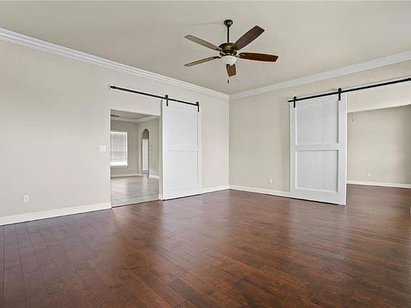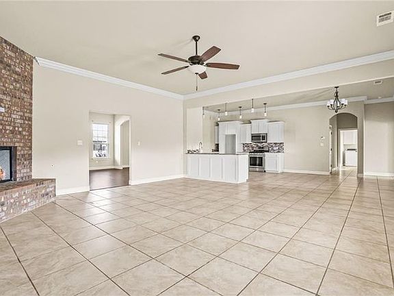 When you visit this home, try not to linger on the front porch or you may never make it inside! After you take in the view, step inside to a modern floor plan designed to accommodate almost any lifestyle. Two oversized, open-concept living and dining areas offer room to indulge larger gatherings of family or friends, while two formal living and dining areas provide space for smaller, more intimate gatherings. The split-bedroom plan also offers a flex space functional as a bedroom, office, or other use.