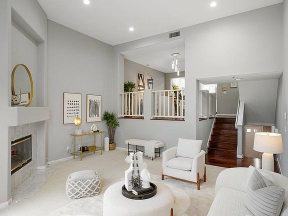 Step into a generous living room with soaring 15-foot ceilings, a cozy fireplace, and direct access to a private outdoor patio. The flowing layout continues with a few steps leading to a dedicated dining area, a stylish half bath, and an oversized kitchen equipped with a breakfast nook that doubles as a convenient office space. Upstairs, discover two en-suite bedrooms, each featuring high ceilings and ample closet space, along with a convenient laundry area. The primary bedroom opens up to its own private outdoor balcony. The attached garage offers abundant extra storage, ideal for an exercise space or additional storage to suit your lifestyle. The home is freshly painted throughout, and the kitchen and 2 bathrooms are designed with contemporary updates. This home is a rare gem in Foster City that promises comfort and sophistication in every corner. Uber-convenient location for commuting to any part of the Bay Area, with easy access to Silicon Valley, East Bay, and San Francisco.