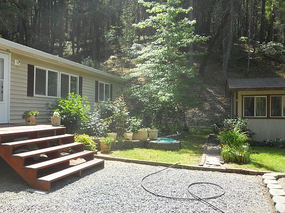 Don't miss out on this secluded wooded property close to Ferry Rd. boat ramp. Absolutely gorgeous property. House is up a long driveway and nestled into the tall timber but, open & sunny facing west. 1998 Fleetwood Doublewide that has been very well maintained. 3 Bedroom 2 Bath Home with a large kitchen with eating area and pantry. Master bedroom has it's own large bathroom and walk in closet. Two other bedrooms are nice size as well as second bathroom. Both are full bath Total of 1,200 sq.ft. Detached 16x16 building that was divided in half so one side is finished and one side is not and was used for shop. Another outbuilding appox 10x12 is great for storage or could be another shop. Property is on slight hillside and is partially surrounded by BLM. Has spring water rights with a 1,500 gal holing tank. Well has a 1,500 gal holding tank. Room to park RV and extra parking and toys! Small deck off kitchen. Beautiful flower garden and small fenched in area of fruit trees