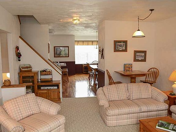Fantastic 3 story, 4 bedroom townhome right at the top of the ski slopes. Prime location with a short walk to the big lift on the Valley side ski slopes, and also an easy walk to both swimming pools and tennis. The property is being sold fully furnished, has gas heat, A/C, 1 car garage, hardwood flooring, berber carpet, large deck overlooking the ski slopes, awesome rental possibilities and so much more! Enjoy it all here at Hidden Valley Resort!