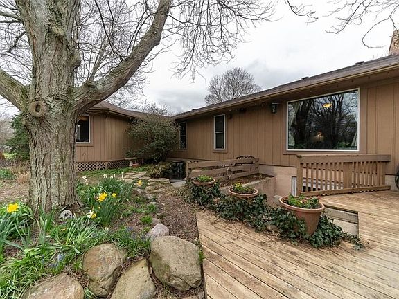 Call or Text listing agent Darcy Friel at 330.324.2264 for a private showing. This is the home whose yard you have always admired when you are walking across the bridge at Price Park! Absolutely gorgeous setting with tiered deck, a waterfall filled water feature, octagonal sunroom, raised beds for gardening and multiple flowering and fruit trees. Inside the spacious foyer opens to an exposed brick wall and enters into the family room with a full wall windows to overlook the backyard. There is a huge dining room / living room area with hardwood floors, brick fireplace and sliding glass doors out to the deck. The kitchen is a Schrock kitchen with Corian countertops, tile backsplash, pantry and an additional closet with first floor laundry plumbing capabilities. The master bedroom is huge with a walk-in closet, private bath and doors that open to the octagonal sunroom with five skylights and a cedar vaulted ceiling. Each of the additional three bedrooms have double closets and ceiling fans. The basement is phenomenal! It walks out with an additional set of double doors, has a second fireplace and also has another room that could be a fifth bedroom or office. There are built-ins and walk-in cedar closet, half bath and additional storage areas. The basement is 13 course block.