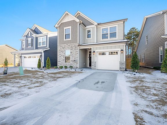 Discover this beautiful, like-new home perfectly situated near everything Durham and Brier Creek have to offer. Featuring 3 bedrooms, 3 full bathrooms, and a large open loft, this home combines style, comfort, and convenience. Enjoy cooking and entertaining in the spacious kitchen, then relax in the inviting living areas filled with natural light. The first floor primary suite offers a double vanity and generous storage, creating your own private retreat. There is a 2nd bedroom, full bath, and laundry room on the main floor for added convenience. Step outside to a fully fenced backyard ideal for gatherings, play, or pets. The garage includes a sleek epoxy finish for a clean, durable look. Live just minutes from downtown Durham and RTP in a vibrant community that blends convenience with a quiet neighborhood feel. Enjoy access to a sparkling community pool, clubhouse, gym, dog park, sidewalks for evening strolls, and well kept common areas that keep the neighborhood looking fresh and inviting. HOA also maintains the front and back yard. The home itself is just over a year old, offering modern construction, up to date systems, and contemporary finishes so you can move in and immediately enjoy a low maintenance lifestyle in one of Durham's most connected locations. If you're searching for a bright, comfortable home in a highly desirable location, this is the one.