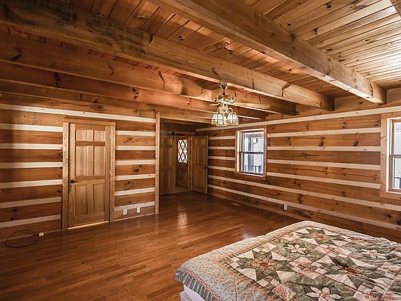 Nature Abounds on this Secluded 13 acre Paradise! Beautiful Custom Log Home surrounded by 3 Covered Porches! 2 story Great Rm w/ floor to ceiling Stone Fireplace! Spacious Eat In Country Kitchen! Huge main level Master Suite! Upstairs Loft area. Stocked Pond with fishing dock. Partial Unfinished Basement with Large Workshop Area.