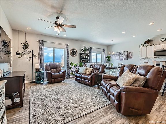 Discover the perfect blend of comfort and elegance in this stunning 3 bedroom, 2 bathroom Ranch home, ideally located in the serene community of Dacono. This home is a testament to modern living with an open floor-plan that ensures a seamless flow between spaces, complemented by recessed lighting that adds an airy brightness to the entire home. The beautiful engineered plank flooring throughout the home not only adds to its aesthetic appeal but also ensures durability and ease of maintenance. At the heart of this home is a spacious kitchen, designed to cater to both the culinary enthusiast and the entertainer. It features a practical island, perfect for meal prep or casual dining, stainless steel appliances that offer both style and functionality, and a pantry for ample storage. The kitchen's design combines practicality with style, making it a joy to cook and socialize in. The primary suite is a private sanctuary, boasting an ensuite bathroom for convenience and privacy, as well as a large walk-in closet that provides generous space for wardrobe storage. This suite is designed to be a peaceful retreat for relaxation and rejuvenation. One of the most captivating aspects of this property is its location, offering stunning views of the mountains and foothills. These breathtaking vistas provide a serene backdrop to everyday life, bringing the beauty of nature right to your doorstep. Situated on one of the largest lots in the area at 11,331 sq.ft., this property with a beautiful outdoor patio offers abundant outdoor space for gardening, entertainment, or simply enjoying the Colorado sunshine. The 12x16 shed adds plenty of storage. The inclusion of a 3-car garage provides ample space for vehicles and storage, addressing all your parking and storage needs. With its thoughtful design, modern amenities, and unbeatable location, it promises a living experience that is both luxurious and comfortable.