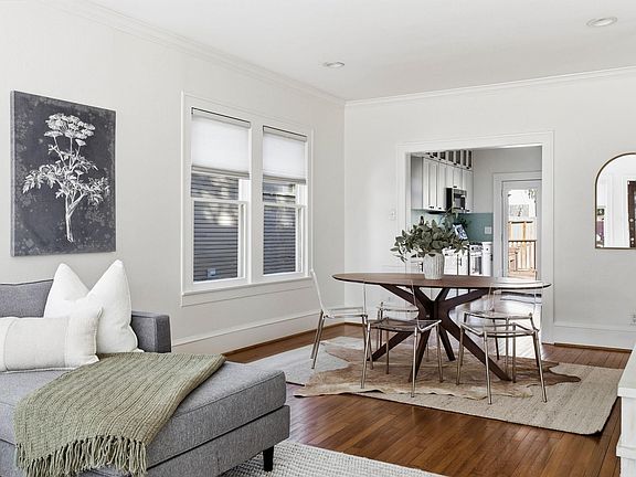 Private patioFully fenced yardClassic detailsHardwood floorsAdjoining flex roomThree-bedroom two-bath layoutCorner lot