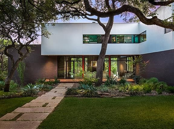 This exquisite custom home was brilliantly created by Specht Architects of New York. The contemporary design optimizes the tree-filled views. Details include walls of glass, extensive custom built-ins and recessed trim work. Wonderful spaces for entertaining on the lower level, with private bedrooms spaces above. Situated on 1.2 acres, the serene property has towering Oak trees and gentle topography. The home takes advantage of this private setting with over 2,000 square feet of outdoor living spaces.