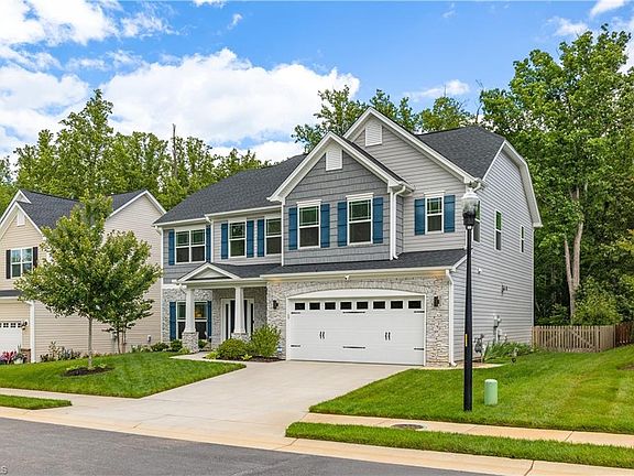 HUGE PRICE REDUCTION, THIS IS A STEAL FOR $429,900! Stone Exterior with front porch, covered patio nestled at the end of a cul-de-sac backs up to the woods. Offers 4 bedrooms, 2.5 baths. Hardwood on the entire 1st floor and upstairs hall, and Owner's suite. Oak tread stairs, Gourmet kitchen with wall oven, gas cooktop, under cabinet lighting, granite, can lights, and pyramid style hood. 2- story foyer with dramatic staircase. Foyer and dining room with gorgeous designer chandeliers. Owner's bath with 6' tile shower with frameless shower doors and 12X24 decorator tile throughout. Beautiful oil rubbed bronze hardware throughout. Ceiling fans in all bedrooms and great room. Can lights in all great room and owner's suite. Tray ceiling in dining room. Ceramic tile floors in baths. Crown moulding throughout 1st floor. Direct vent fireplace with logs. This home is a rare find at this price. There are too many more features to mention.