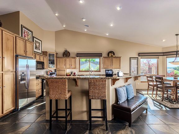 As you enter this meticulously well kept home you will be amazed at the beautiful amenities it has to offer. High grade Brazilian Cherry Hardwood and slate tile flooring that tastefully runs though out the family room, guest bedrooms, kitchen, bathrooms and hallways. The open chef's Kitchen with granite countertops, Island and upgraded appliances. It joins with the spacious family room w/gas fireplace. The dining area has picture windows where you can enjoy the wonderful views. Master bathroom offers his and her sinks and both garden tub and sep. shower. Retreat to the extremely comfortable covered patio with amazing views of Granite Mountain and City Lights. This single-level custom home is in an upscale neighborhood conveniently located just minutes from historic downtown Prescott.