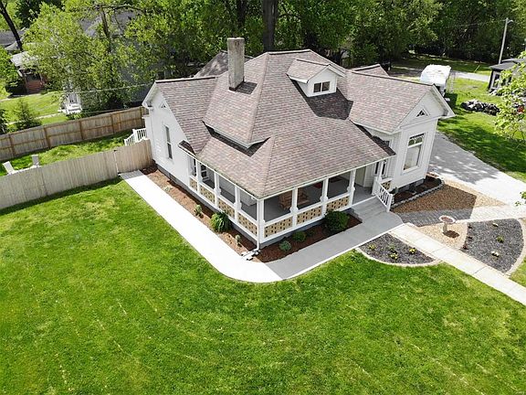 FOR MORE INFORMATION OR A PERSONAL TOUR PLEASE CONTACT THE HEINLEIN HOME TEAM AT RE/MAX ALLIANCE AT 618-781-2322 (Michelle) or 618-558-1298 (Scott) or visit us at www.HeinleinHomeTeam.com. All offers, if any, will be reviewed by 4pm on May 11th. Charming and completely renovated home close to downtown Edwardsville. Beautiful hardwood floors, soaring ceilings, loads of windows for natural light, main floor laundry with washer/dryer to stay, and era-millwork and crown molding. New kitchen w/ large center island, solid surface countertops, custom white cabinetry, tile backsplash, and stainless steel appliances. Master bedroom w/ brand new half bath, plus another large bedroom on the main level. Upstairs attic that could be playroom, possible 3rd bedroom, office, or craft room/art studio beautiful hardwood floors in that room too. Full bath on main level w/ dbl bowl vanity & walk-in tile shower. Formal dining rm. Huge living room at front of home. Enjoy the wrap around front porch or playing games in your huge corner lot or fenced in yard. Situated on two lots w/ a 4 CAR GARAGE! HVA 2019, Hot water heater 2019, roof 7 yrs, 200 amp circuit breaker. This one is a MUST SEE!