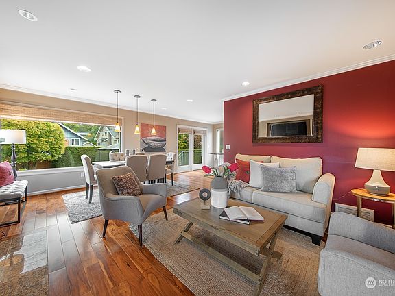 Location! Steps to Woodland Park, and Green Lake.  Beautifully remodeled from the studs out in 2011, move in and enjoy. Gorgeous chef's kitchen with abundant cabinets and counters. Living area with beautiful wood floors, gas fireplace, corner windows and door out to your private patio and fully fenced yard perfect for entertaining. Two bedrooms up plus 3/4 bath.  Open staircase to the lower-level finished rec room with built-ins and gas fireplace. Third non-conforming bedroom downstairs with attached 3/4 bath, double sinks and walk -in glass shower. Corner lot, plus alley access from the 2 vehicle carport.  Updates include electrical, heating, main sewer line.