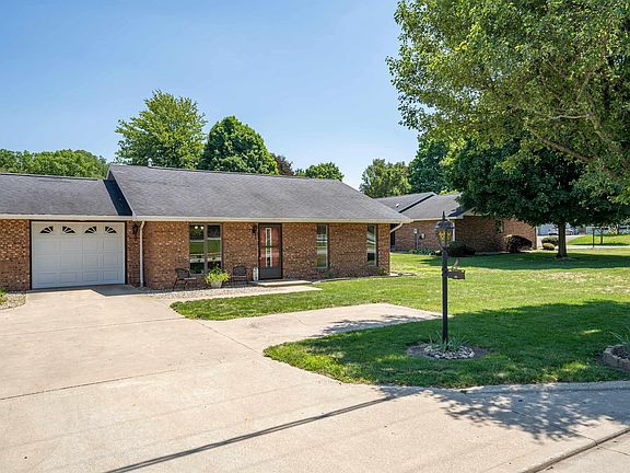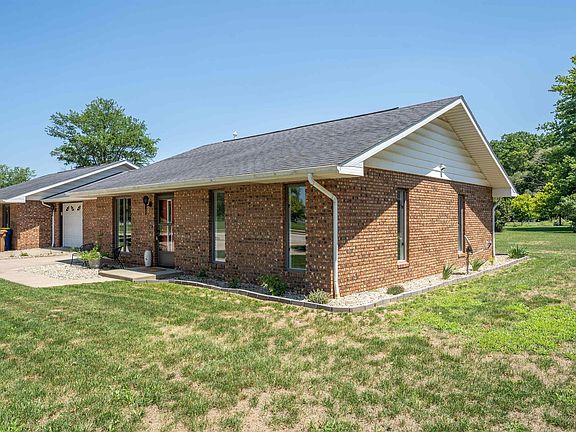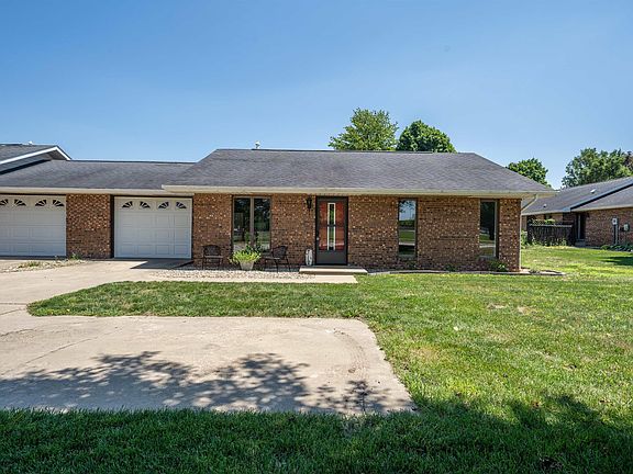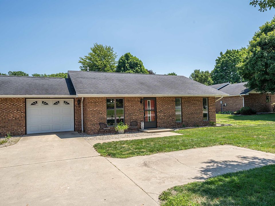 Say hello to this lovely updated condo for easy, breezy maintenance free living! Located in Royal Estates Condos right across from North Manchester High School just south of IN-13, this 2 bedroom, 2 full bath ranch is completely move-in ready & waiting for you! Classic & clean brick exterior presents a welcoming sight from the moment you pull up to the attached 1-car garage with additional parking apron. Inside you’ll be amazed at the bright & clean totally refreshed atmosphere complemented by new wood flooring & soft neutral color palette—the perfect backdrop to your own personal style! A long foyer with hall closet leads back to the open concept floor plan accented by gray wainscoting that really ties everything together. Main living area features a floor to ceiling white brick gas fireplace to keep you cozy all winter & tons of natural light from sliding glass doors to back patio. Centrally located dining area sits under a ceiling fan with lights in front of folding closet doors containing utilities & stackable laundry. Wrap around breakfast bar separates kitchen from dining where you can grab quick bites. Efficient kitchen is cute & cheery with plenty of cabinets, recessed lighting & large picture windows facing front yard. Generous primary bedroom includes en suite bath with tub/shower combo & mirrored medicine cabinet. Both bedrooms are carpeted & comfortably sized with lots of almost floor to ceiling windows & ample storage throughout. Enjoy quiet evenings on your back patio overlooking the big feeling back yard—an excellent spot to relax with a cold drink or dine al fresco. A small portion of privacy fence divides the yard from the neighboring condo. There are 2 access points to the back yard: the sliding glass doors from the living room & a back door to the garage. Tidy rock beds surround the condo & are a great spot for planting & testing out your green thumb. Conveniently close to all local amenities & downtown North Manchester with easy access to shopping, dining & groceries along E Main St. Warvel Park is just over a block away if you’re looking to get out for a stroll & stretch your legs. [Note: Condo restrictions require owners to be 55 or older. Condo monthly fees cover mowing, plowing, water & trash pick up.] This condo truly has everything you need for peaceful living! Are you ready to have your best autumn yet from the comfort of your new home? Don’t let this one slip away—reach out today!