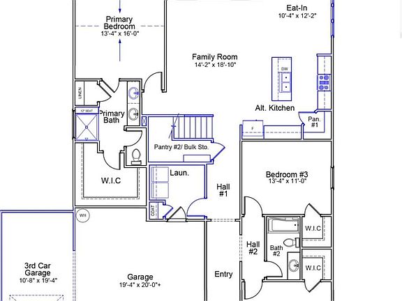 Mainly one-story homeIsland with breakfast barFour bedroomsThree bathroomsLinen closetWater closetLarge walk-in closet