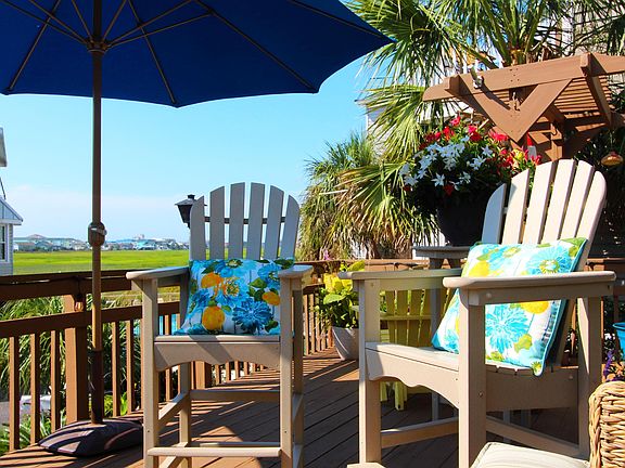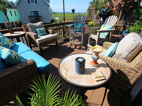 Tucked beneath massive live oaks, the community in which this home is located sits adjacent to the marsh while the beach is just a short walk or golf cart ride away. Owners here will enjoy panoramic views of the marsh and inlet from the neighborhood pool. Short-term rentals are not permitted in this quaint community thus preserving its peace and tranquility. This raised beach home is great for entertaining with a spacious deck off the main living area from which a beautiful marsh view can also be enjoyed. Below are additional areas for gathering as well as large enclosed storage spaces and plenty of parking. The kitchen features granite countertops, stainless appliances and a double oven. Tasteful colors, ceiling fans and upgraded lighting can be found throughout. Recent additions to this home include luxury vinyl plank (LVP) flooring in 2019, a new HVAC system in 2020 and a new roof in September. In addition to our gorgeous area beaches, this home is in close proximity to a wide variety of shopping, dining, golf and entertainment venues.