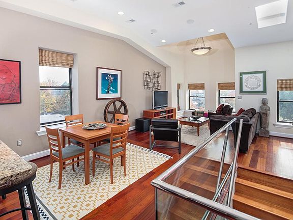 On the best street in Columbia Heights, this penthouse in a boutique building offers you 20+ foot ceilings, tons of sunlight, off-street parking, and a private roof-deck with 360-degree views of the city. The kitchen features top-of the line Miele (oven), Viking gas cooktop, and Jenn-Air fridge and dishwasher, as well as a wine-fridge. The master bedroom and guest room feature en-suite baths, giving you and your guests (or roommates) privacy. And there's an extra powder room in the main hall. In-ceiling speakers throughout and additional speakers on the roof deck. Off the back bedroom you will find a patio with plants (supplied by landlord) and area for grilling. Take the staircase up to the roof deck that also comes with outdoor dining furniture from Crate and Barrel and CB2, as well as three trees (not shown in current photos)! This is across from the dog park, so you know that your view will never be blocked by new construction. Right next door is Meridian Pint, with all of the other dining of 11th street within steps, including Bad Saint, Red Rocks, Maple, and the Coupe! Viewings by appointment. Lease can begin any time between May 20 and July 15. Landlord provides some outdoor furniture, plants, grill, and large dining table.