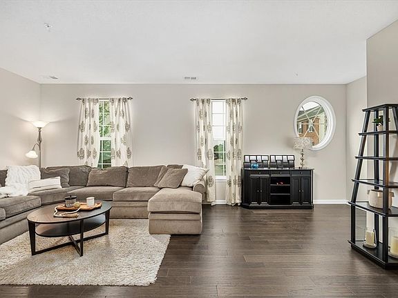 Incredible townhome on the best lot in private gated community of The Pointe at Adams Ridge! The best upgrades were thoughtfully selected when this home was built including the 4ft rear extension, hardwood main floor & gourmet kitchen. Pull into 2 car garage & enter your finished basement with a french door that leads to a huge backyard that looks over wooded greenspace. Head to main floor & fall in love with kitchen complete with granite, oversized island, stainless appliances & tile backsplash. Dining area benefits from extension allowing plenty of space for a large table to accommodate guests. Don't miss the private composite deck perfect for relaxing in the sun. A spacious living rm finishes off this floor. Upstairs find master suite with a walk in closet & ensuite bath with double bowl vanity soaker tub and separate shower. Two additional bedrms, a hall bath & laundry complete this floor. Neighborhood features: a clubhouse with gym, theater, party rooms, 2 pools and playground.