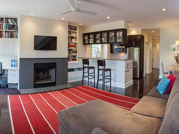 The penthouse at 1103 Prospect Ave is a incredible space with a enormous planted private roof located in the idyllic neighborhood of Windsor Terrace and just three short blocks from Prospect Park. Light streams into the apartment through three exposures (N/S/W) overlooking tree lined streets. The open plan living room features a wood burning fireplace, recessed lighting, dining alcove and french doors to a private balcony. A windowed kitchen includes new, stainless appliances, caesarstone countertops and breakfast bar. Beyond the kitchen, you will find a well-appointed, windowed bath with soaking tub, in-unit washer/vented dryer and two spacious bedrooms. Off the quiet master bed, you'll find an en-suite tiled bath and private balcony. Perhaps the most unique feature of this apartment is the thoughtfully designed 1100sf+ private roof deck accessed through the living room. Arranged with multiple uses in mind, one could imagine the raised deck area as the perfect spot for cocktails and dinner parties while the turfed lower level might accommodate a safe play area or sunbathing. Custom planter boxes line the entire area and both electricity and water have been installed. Finally, storage is abundant throughout the unit and an extra large on-site storage unit is included. Parc Maison is a solidly constructed and well run boutique condo which enjoys incredibly low common charges and a tax abatement through 2024. Fantastic eating and shopping options abound within a few short blocks and conveniently, you'll find a pharmacy and market across the street. The F/G train stop is an 8 minute walk away and the property is zoned for District 15 which includes P.S. 154 The Windsor Terrace School and Pre-K Center at Bishop Ford School Site. $160 assessment in place until Oct 2019.