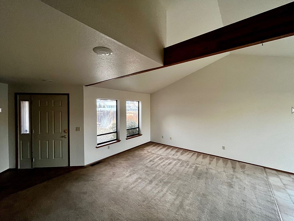 Discover the perfect blend of style and functionality in this two-bedroom duplex that lives like a single-family home. Enjoy the convenience of a spacious two-car garage and private entrance, complemented by soaring cathedral ceilings with a stunning exposed beam in the open-concept living and dining area. Large windows and a sliding glass door fill the space with natural light. The main-floor primary suite offers ultimate comfort, while the upstairs bedroom and bathroom provide a private retreat. The spacious galley kitchen features a sleek double stainless-steel sink overlooking your beautifully maintained backyard. Step out onto the large patio, perfect for BBQs and entertaining. With a dedicated laundry/utility room, extra storage, and a low-maintenance yard with underground sprinklers, this duplex has it all. Don't miss the chance to make it yours! NO NEED TO CALL! SCHEDULE AN APPOINTMENT ANYTIME: Visit our website to schedule a tour. Some homes are available for self showings, while others will require a guided tour. RESPONSE TIME: We will answer all leads in the order received, and we do our best to respond within one business day. We respond to ALL inquiries. HOW TO APPLY: Once you have toured the property and are ready to apply, visit our website to apply online. Applications are $50 per adult over the age of 18. Each person must fill out a separate application; there are no joint applications for married persons or co-signers. SCREENING CRITERIA: Please visit our website for our detailed screening criteria. We DO NOT answer screening criteria qualification questions over the phone. PETS: Pets are approved on a case by case basis. Applicants must verify with management regarding specific pets and go through a pet screening process. The pet application is $25 each and if approved, there is a one-time non-refundable pet fee of $250 due at move in, and pet rent of $50 per month. *Management does not guarantee that your pet will be approved. MOVE IN COSTS: A holding fee of $1,000 is required to take the property off the market. This will be applied as a non-refundable administrative fee of $250 and a non-refundable carpet cleaning/cleaning fee of $750. First months rent and Security Deposit are required at move in. If your move-in date is mid month, the prorate will be assessed to the second month of tenancy.