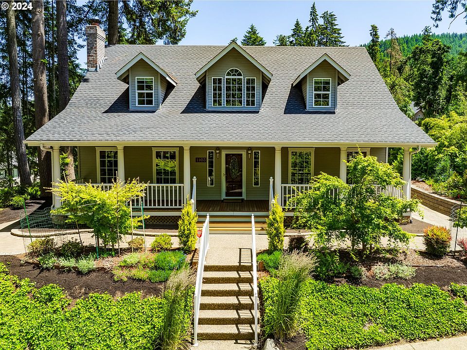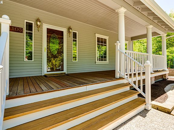 This traditional style home in the Thurston hills is ready for a new owner. It's beautiful covered porch and large corner lot create a private haven at the edge of town. Its gorgeous entry welcomes you with vaulted ceilings, hardwood floors, and classic wood trimmed windows. The kitchen is fully equipped with quartz counters, cook island, double convection oven, stainless steel appliances, and timeless wood cabinets. Attached to the kitchen is the dining room which has a bay window pouring with natural light. The main level primary suite has french doors, double closets, a walk in closet and a full bathroom. Upstairs has two well sized bedrooms with charming dormers and large closets, and a full bathroom with a clawfoot tub. This home provides plenty of convenience with an indoor laundry room, under stairs storage, plenty of closet space and a half bath on the main floor for guests. The two car garage offers a large additional storage room above. The exterior is nothing short of dreamy with a custom pathway surrounding the home, mature landscaping you can see from every window, views of the hills, and a private back patio..