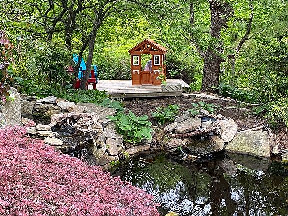 An Elegant estate. Hidden past first glimpse of long driveway, Tranquil waterfalls; a private majestic home. Offers 360 views perched on beautiful 'Park-like' professionally manicured grounds; your dream come true. Spacious property, large Rooms, high ceilings, lots of Natural Light, Relaxed and breathtaking from Blue-stone sidewalk, 2 story grand entry, to sandstone tiered picturesque backyard. Uniquely designed, smartly built w/Top of line Materials, tasteful Upgrades. Expensive chef Delight Kitchen; Home Theater entertainment Room w/wet bar; boasting huge numerous decks and Sitting room w/FP off Master Bedroom Suite; 1st Floor Office/Den; floor to ceiling windows; hammock patios for relaxed evenings alone or entertaining large number of Guests. Bookcases galore, vast storage everywhere; official 'Home office' with private entry. Value centered buyer? Found your match - A Must see, soon be gone. NOTE: Few personal items seller shall remove, above ground pool, Fridge in kitchen. 2020-10-20