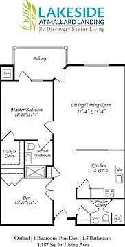 Spacious One Bedroom with Den apartment at Mallard Landing, a 55 plus resident-focused senior living community, offering vibrant, active Independent Living in stylish, dedicated apartment homes. These full-size, fully-equipped apartments feature, integrated washers and dryers, and covered porches and outdoor living areas, all situated around the spectacular, Grande Clubhouse. Mallard Landing Independent Living empowers a leisure-filled, maintenance-free lifestyle with restaurant-quality dining, a multitude of fabulous, resort-style amenities, and senior-specific fitness.