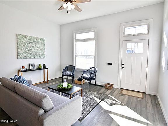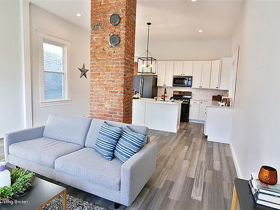 This classic camelback in Shelby Park is completely renovated. Entering the front door, you'll notice soaring ceilings, new gray tone engineered hardwood, and an exposed brick chimney. The open concept kitchen features white shaker style cabinets, quartzite countertops, and a suite of black stainless-steel appliances. Down the exposed brick hall there's a full bath with tile floors, updated fixtures and a tiled shower. The first bedroom on this floor has original refinished pine floors and a large closet. At the rear of the home is a bonus family room which has access to the cellar as well as a laundry closet. The 2nd bedroom is in the back and has new carpet.