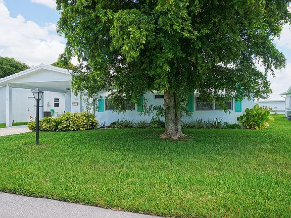 This Regis Model home in Palm Beach Leisureville features 2 bedrooms, 2 full bathrooms and a 1 car carport. Many updates throughout the property. The kitchen was updated in 2015 with extra cabinets, stainless steel appliances and plenty of counter space. The primary bedroom has a walk-in closet and a private updated bathroom. The air conditioning was installed in 2016, water heater in 2019, ceiling fans, door hardware and fresh paint on the inside in 2020. Roof installed in 2012. Pre-Paid Recreational lease. Nice spacious backyard. The community features 3 clubhouses with pools, golf course and recreational areas. Property has severe termite damage.