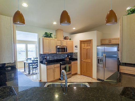 Upgraded! This 4 bedrm, 2318 SF home on 3 acres has maple cabinets & solid wood doors throughout. Open kitchen w/granite counters, glass tile back-splash, stainless appliances & pantry. Large dining rm. Media rm. Interior walls insulated for sound reduct. Master bedrm w/sliding glass dr to patio, spa like bath w/garden tub, & closet w/organizer. Lg garage w/epoxy flr. Large Laundry rm w/ sink. FA Heat/AC(heat pump). Gutters, Garden shed. Big patio, sprinkler system in yard & views all around!