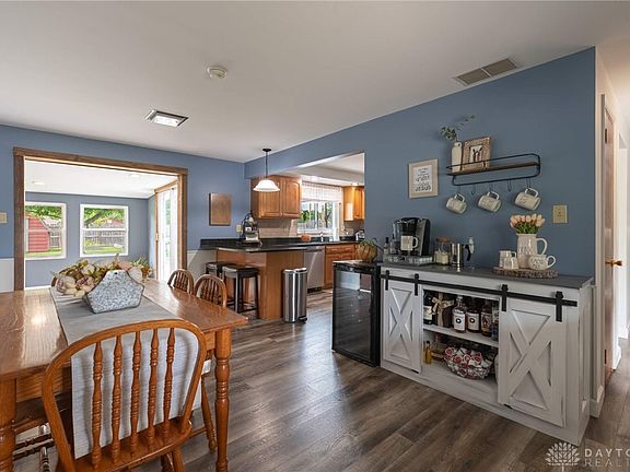 Beautiful ranch home in Rona Hills! 3 bedrooms, 2 full baths and a 2 car garage. Family room with a gorgeous gas fireplace. Wonderful curb appeal. There are a lot of updates including: Huge bonus room on the back of the home, stripped down to the studs, w/ all new drywall, windows and siding. New luxury vinyl flooring throughout except the bedrooms. Water heater new in 2022. Fresh paint throughout in the last 2-3 years. Roof replaced in 2015. Water softener 2015. Updated windows. Kitchen was updated to include lovely mocha colored cabinets, granite counters, ceramic tile floor, newer appliances with the exception of the double ovens. New dishwasher in 2022. Completely fenced yard with a shed, new jungle gym that is negotiable, raised gardens and a great new patio with a built in firepit and a privacy fenced yard. Two parks within walking distance. This home is less than 6 miles to WPAFB. Lots of shopping and restaurants nearby including the Fairfield Commons. Come see this darling place and fall in love.
