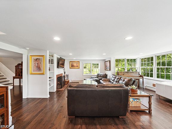 This East facing charming historic farmhouse was designed by Robert Parker Coffin and sits just over the bridge in downtown Long Grove. Completely renovated and expanded in 2015. Upgrades include; Marvin integrity windows, roof w/architectural shingles, gutters, new front porch and sidewalk, high grade Thermtru french doors throughout, custom country kitchen with a wood burning brick fireplace, newer appliances including an in cabinet wine/beer fridge, 4 custom baths, all hardwood and flooring, garage doors, radiant heat flooring in the mudroom & kitchen, HVAC & AC spacepak high pressure system, boiler, copper runs and radiators (left a few originals for their vintage ascetics), all drywall except in the middle of the house (plaster walls & ceilings) to preserve the look and painted throughout. 1st floor primary bedroom with 2 walk in closets and a full walk in bath with shower and dual shower heads and benches. In-law arrangement with additional first floor bedroom. Additional wood burning fireplace in the living room. This home sits on a prime 2 acre lot with views of the bridge and stream out the windows. It's elegance and grace and charm of yesteryear will surely enchant you.