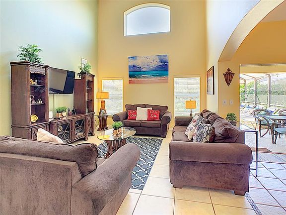 Occupying a prime location, this Mediterranean style detached villa is located in the exclusive man gated and resort style community of Solana. Only 15-30 minutes drive from Disney parks and ideally situated on HWY US 27. Featuring 5 bedrooms, 3 full bathrooms, lounges, dining room and separate family room, the house comes fully furnished and equipped with all appliances. All bedrooms have cable television and WIFI access. The master suite is downstairs. Outside there is a private heated pool with an extended sundeck area. Solana resort is an exclusive community of vacation rental homes, short term, long term or permanent homes. The clubhouse is beautiful and offers a resort size swimming pool, tiki bar, Spa, sand volleyball court, mini golf, fitness room and gym, playground and arcade. HOA includes Cable, Internet and lawn maintenance, along with all clubhouse amenities