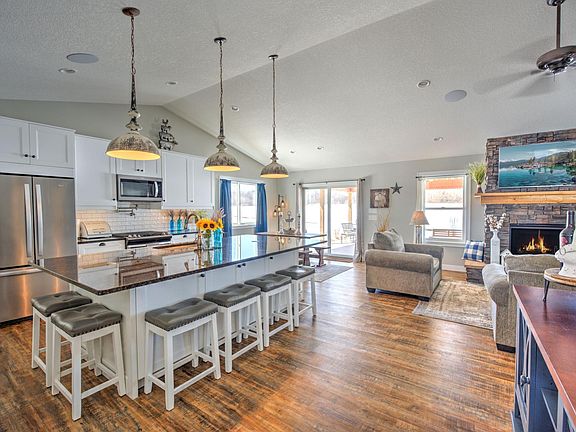 Beautiful one level rambler built in 2019 shows like new! Enjoy the comfort and efficiency of in floor hot water heat and two mini split A/C units. Open living area has vaulted ceilings, an extra large granite island and stone fireplace. Sneak away to your master suite featuring a private bath with soaker tub, separate shower and walk in closet. Can lighting throughout home on Lutron dimmers to include exterior can lighting with timer to come on at dusk. Garage is completely finished with separate zone to control in floor heat. In ceiling speakers with additional speaker in covered back patio great for entertaining. On demand hot water heater, water softener and separate meter for outdoor water use. Many great features and too many to list them all, a must see. Seller is licensed real estate agent.