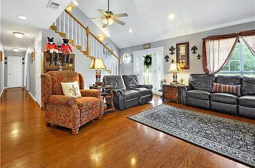 Charming Acadian located on large fenced lot-Amenities include above ground swimming pool with custom deck, large storage shed, room for a boat, gorgeous interior with over-sized closets, spacious bedrooms, large den, hardwood flooring, fireplace, eat-in kitchen, bonus room/study upstairs & floored attic