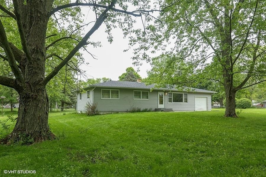 Spread your wings with this 1 acre plus lot within the city limits. The home features 3 bedrooms (1 currently is used as a main floor laundry room), 1 bathroom. The family will enjoy spending time together in the easy flow of the living room and large kitchen/dining area. 1-car attached and a 2-car detached garage, full basement with untapped potential and a fenced backyard. Plenty of room for the garden you have been wanting, or the pole barn you need.