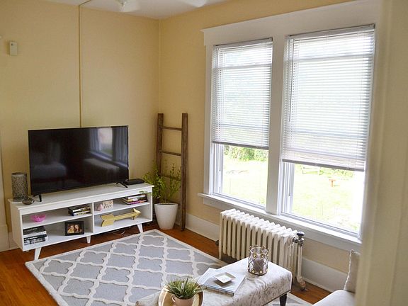 Bright, roomy apartment in Champaign's great Old Town neighborhood. This area is full of big, nice, old houses and is very popular with walkers, runners, and dog walkers. Located across the street from lovely Davidson Park, the apartment is in an older house divided up into 5 apartments. This apartment was totally remodeled recently. New floors. New windows. New paint. New bathroom. Lots more! This unit has the best view of the park and has awesome hardwood floors, a large kitchen, one huge bedroom, one smaller bedroom or office (or massive walk-in closet!), medium-sized living room, huge closet, nice built-in storage in hallway off of kitchen, and a good-sized bathroom. This second-floor apartment stretches the entire length of the house and has a private entrance at the back of the house (an outside stairway leading from the covered parking space to the apartment's kitchen). The apartment's 9 windows keep it very bright, providing an airy feel throughout the home and nice views of the neighborhood's ample greenery. Hardwood floors in the living room and big bedroom. Heat, water, sanitary, and trash removal are all included in the rent. Also included is one free garage parking spot. There is a coin-operated washer and dryer in the basement, and the house is right on the bus line. Please email if you're interested in taking a look. Thanks! Included free: heat, water, trash pick-up, sewer service, covered parking spot. Available August.