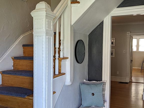 Spacious rooms, great character and completely ready to move into. New hi eff GFA furnace with central air. Sit out and relax on your 26' x 12' deck or enjoy the back patio. Main floor features all hardwood floors, huge living room with built in bookcase and gas fireplace, formal dining room, kitchen with refrigerator, range and dishwasher, breakfast bar and great breakfast nook with door out to deck. Upstairs 3 bedrooms and full bath with additional walk in closet. Floored walk up attic has great potential. LL has a craft room and an office/exercise room plus laundry mechanical room with a wash sink and a bonus stool. Almost all new windows. New flat roof. Corner lot with great off street parking and shed.