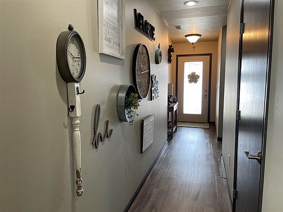 Lots of upgrades! Zero step entry townhome with open floor plan. Two bedrooms and two bathrooms. Kitchen has quartz countertops, tile back splash, soft close cabinets and stainless steel appliances . Master bedroom has an Onyx shower and walk-in closet that is a storm shelter. The backyard has a covered patio, vinyl fencing and underground sprinklers. Lots of storage.