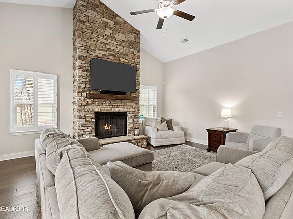 Enjoy one-level living in this beautifully maintained 3-bedroom, 2-bath home tucked at the end of a quiet street in West Knoxville. The open floor plan features hardwood floors, vaulted ceilings in the great room, and a striking stone fireplace. The kitchen offers a functional layout and breakfast bar that flows into the dining and living spaces. The primary suite includes a spacious bedroom, dual closets, and a bathroom with a tiled shower and soaking tub. Plantation shutters, upgraded flooring, and thoughtful design enhance comfort throughout. Outside, the covered back deck offers privacy and a place to unwind. Community amenities include a pool and playground. Zoned for Mill Creek Elementary, Hardin Valley Middle, and Hardin Valley High. This home offers low-maintenance living in a desirable location close to shopping, dining, and major roadways. Plenty of storage space in the attic from the garage.