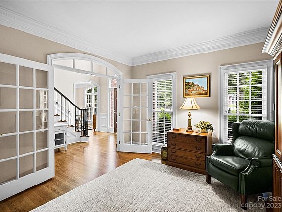 Welcome to a lovely, pristine home in quiet cul-de-sac of Ballantyne Country Club! Beautiful architectural details abound: transom windows,arched doorways,and custom moldings.Gorgeous hardwood floors on main & on dual stairway w/ iron railings.Great floor plan accomodates your needs.Main level study features French doors for privacy.Family room w/built-ins surrounding fireplace has floor to ceiling windows w/views of scenic screened porch. Entertain family&friends with plenty of dining areas & kitchen boasting granite countertops & stainless steel appliances incl. 5 burner gas cooktop,double ovens, and a custom built island with walnut top.Large laundry rm has extra storage.Upstairs all bedrooms and baths are sizable. Primary suite has sitting area with built in bookcase and bath with 2 vanities,Jacuzzi tub& frameless shower w/double showerheads.Huge bonus room at end of hall! Garage has room for golf cart.Owners have GOLF membership-can be purchased by Buyer-Skip 2+ year wait list!